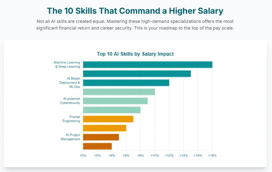 In 2025, the job market is ruthless but full of opportunity. Employers aren’t just looking for “tech-savvy” professionals — they’re rewarding those with the right AI skills. According to global reports, mastering the right skills can boost your salary by 5% to nearly 20%.
