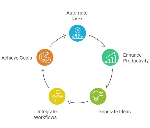 • Sales teams can automate deals and updates; HR teams can help new employees with onboarding instantly.